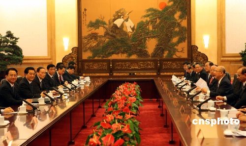 圖:胡錦濤與吳伯雄一行舉行會(huì)談