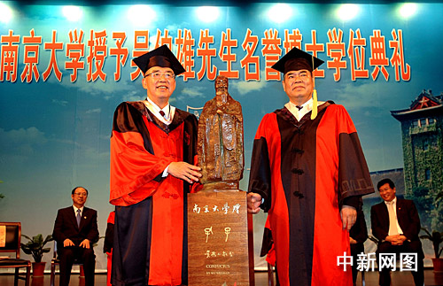圖:南京大學(xué)授予吳伯雄名譽(yù)博士學(xué)位