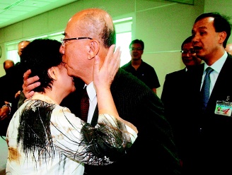 圖:吳伯雄訪問(wèn)大陸行前深情吻別妻子