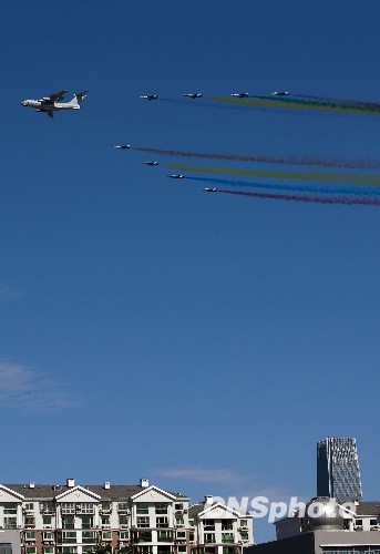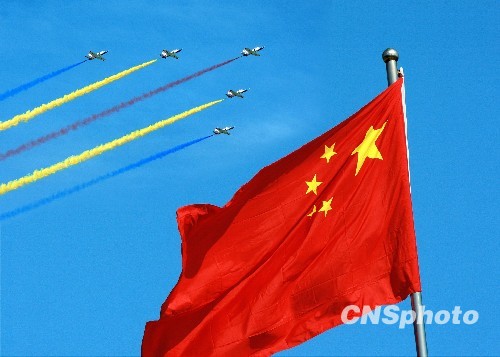 國慶閱兵:領(lǐng)隊(duì)機(jī)梯隊(duì)飛過北京上空