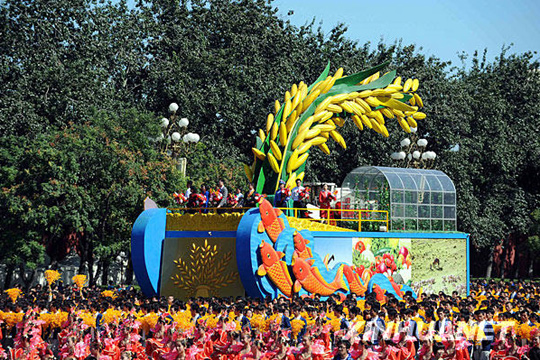 國慶慶典:陜西彩車亮相群眾游行隊(duì)伍