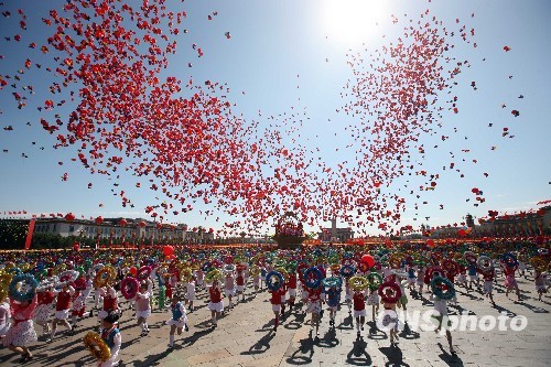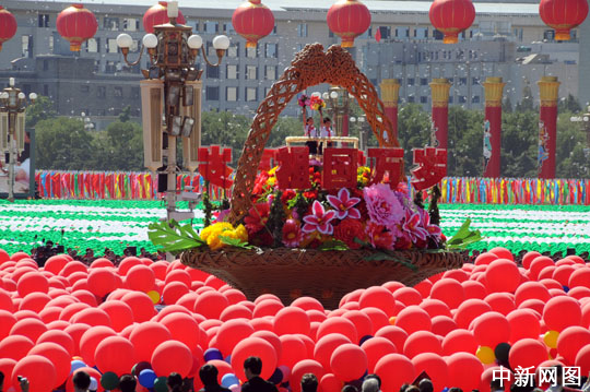 國慶慶典:“國徽和國慶年號(hào)”方陣