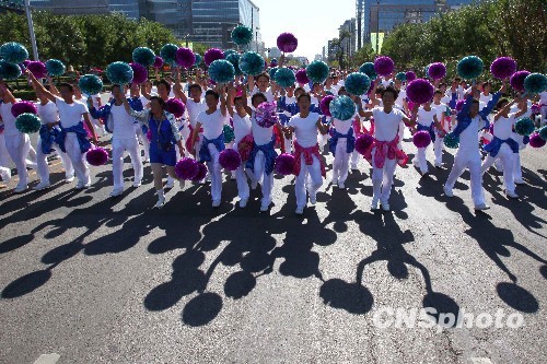 國慶花絮:參加游行的學(xué)生方隊(duì)