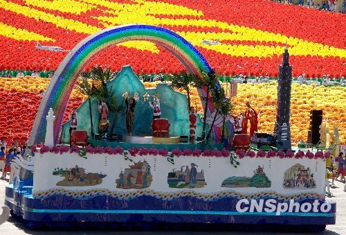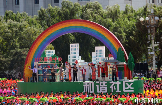 國慶慶典:新疆彩車亮相群眾游行隊(duì)伍