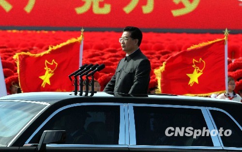 國慶閱兵:胡錦濤乘紅旗車閱兵