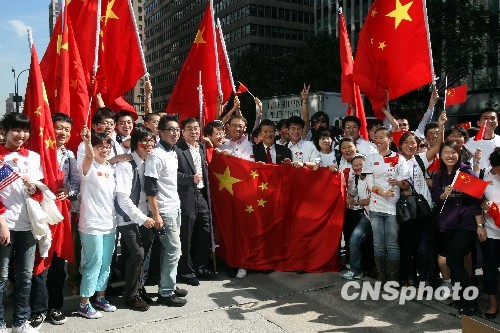 圖:旅美中國(guó)學(xué)生紐約街頭歡迎胡錦濤訪(fǎng)美