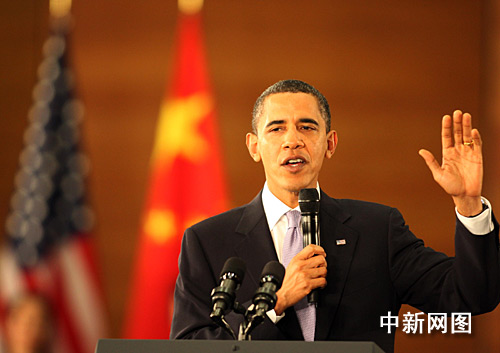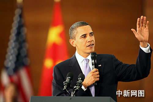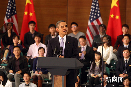 圖:美國(guó)總統(tǒng)奧巴馬在上海發(fā)表演講
