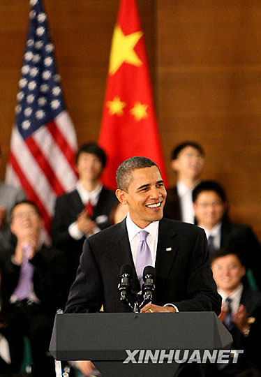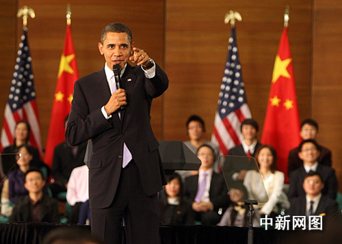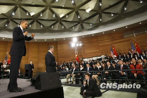 圖:美國(guó)總統(tǒng)奧巴馬在上海與中國(guó)青年對(duì)話