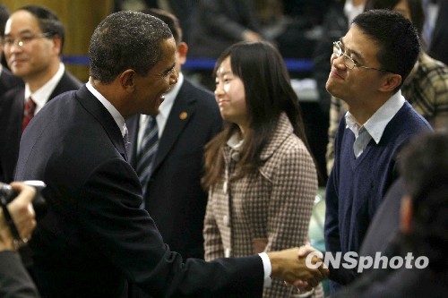 圖:美國(guó)總統(tǒng)奧巴馬與中國(guó)青年“親密接觸”