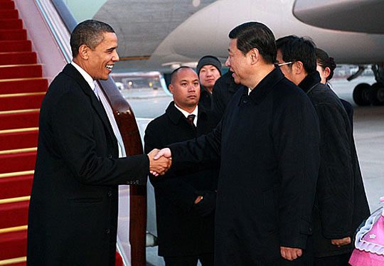 圖:奧巴馬飛抵北京 習(xí)近平前往機(jī)場(chǎng)迎接