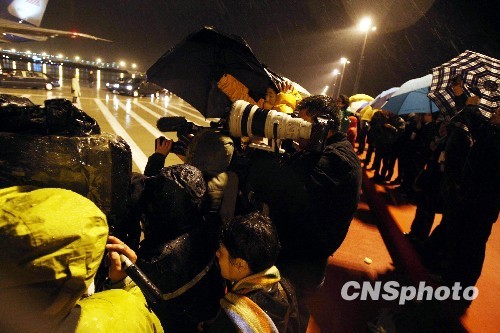圖:美國(guó)總統(tǒng)奧巴馬抵達(dá)上海 記者雨中等候