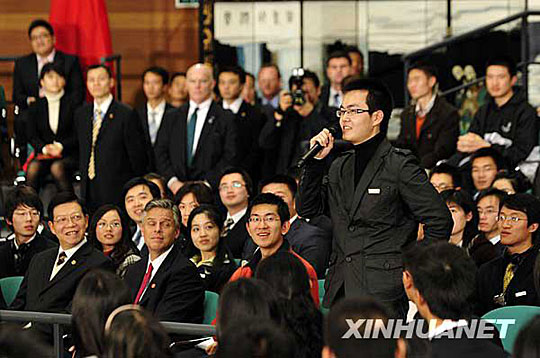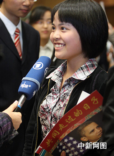 圖:青年學(xué)生向美國(guó)總統(tǒng)奧巴馬提問