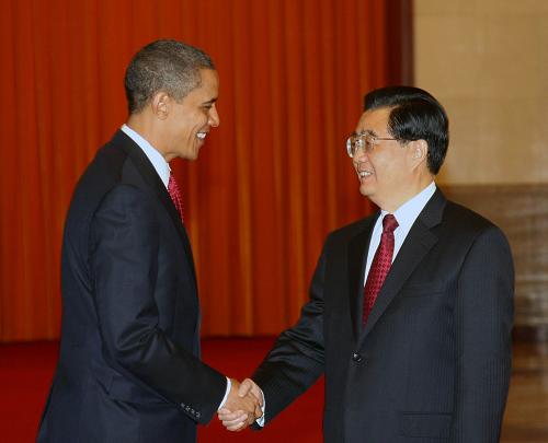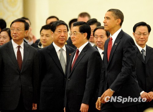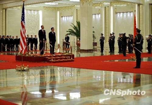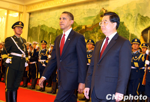 圖:胡錦濤舉行儀式歡迎美國(guó)總統(tǒng)奧巴馬訪華