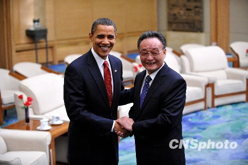圖:吳邦國(guó)會(huì)見美國(guó)總統(tǒng)奧巴馬一行