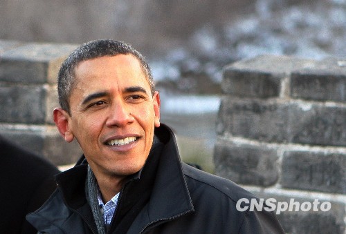 圖:奧巴馬登上北京八達(dá)嶺長(zhǎng)城