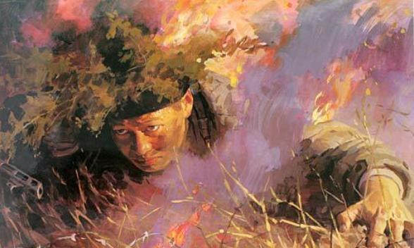 第二天11點鐘的時候,敵人胡亂發(fā)出一顆燃燒彈,忽然落邱少云身旁,燒著了他身上的茅草.這時候,他要站起來,是完全可以把火撲滅的.邱少云想起,出發(fā)前,首長交代要嚴格遵守埋伏紀律.邱少云更加知道,要是他爬起來,埋伏在這里的幾十位戰(zhàn)友,就會被敵人發(fā)覺,就有可能被敵人消滅,這樣就破壞了原定的戰(zhàn)斗計劃.他決定躺著不動.我軍陣地上的指揮員,看到埋伏地點起火,連忙命令向敵人開炮,擾亂敵人的注意力.這時候,邱少云還是沒有爬起來撲滅自己身上的火.烈火繼續(xù)燃燒著他的身體.邱少云咬著牙,小聲向靠近的戰(zhàn)友李士虎說:"勝利是我們的,但是我不能完成爆破任務(wù)了,交給你去完成吧!"說完,他把被烈火燒著的身體更緊地貼到地上,一直到犧牲,也沒動一下.李士虎急得咬破了嘴唇,眼睛里像要冒火.但是,他和邱少云一樣,和埋伏在那里的所有戰(zhàn)友一樣,想到了整體,想到了整個戰(zhàn)斗的勝利,眼看著他親愛的戰(zhàn)友壯烈犧牲;忍受著內(nèi)心的仇恨,焦急地等待著戰(zhàn)斗的信號.