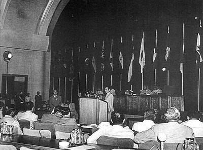 1955年4月17日,由國務院總理兼外交部長周恩來率領的中國代表團抵達萬隆,出席從4月18日至24日舉行的、有29個國家參加的亞非會議。4月19日,周恩來先后在全體會議上作了發(fā)言和補充發(fā)言,提出了“求同存異”方針。他說,根據(jù)互相尊重主權和領土完整、互不侵犯、互不干涉內政、平等互利的原則,社會制度不同的國家是可以實現(xiàn)和平共處。過去殖民統(tǒng)治在亞非國家間所造成的不和和隔閡,不應該繼續(xù)存在。我們應該互相尊重,消除互相間可能存在的疑慮和恐懼。他還說,中國代表團是來求團結而不是來吵架的。是來求同而不是來立異的,我們的會議應該求同存異,同時會議應將這些共同愿望和要求肯定下來。這是我們中間的主要問題。4月24日,在與會各國代表團的努力下,通過了《亞非會議最后公報》。公報提出,尊重基本人權、尊重聯(lián)合國憲章的宗旨和原則,尊重一切國家的主權和領土完整;承認一切種族的平等,承認一切大小國家的平等;不干預或干涉他國內政等10項原則。