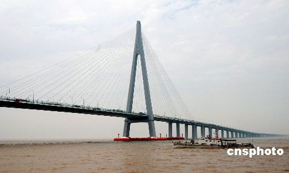 杭州灣跨海大橋(Hangzhou Bay Bridge)是一座橫跨中國杭州灣海域的跨海大橋,2008年5月1日試運營通車。它北起浙江嘉興海鹽鄭家埭,南至寧波慈溪水路灣,全長36公里,是世界上最長的跨海大橋,比連接巴林與沙特的法赫德國王大橋還長11公里,成為繼美國的龐恰特雷恩湖橋后世界第二長的橋梁。杭州灣跨海大橋是國道主干線-同三線跨越杭州灣的便捷通道。大橋北起嘉興市海鹽鄭家埭,跨越寬闊的杭州灣海域后止于寧波市慈溪水路灣,全長36km。大橋建成后將縮短寧波至上海間的陸路距離 120余公里,從而也大大緩解已經(jīng)擁擠不堪滬杭甬高速公路的壓力,形成以上海為中心的江浙滬兩小時交通圈。