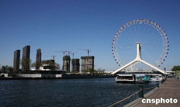 天津之眼即天津永樂(lè)橋摩天輪,2007年12月17日正式合龍,使氣勢(shì)恢弘的“天津之眼”完全“睜開(kāi)”,為津城再添一景。永樂(lè)橋摩天輪的直徑為110米,到達(dá)最高點(diǎn)時(shí),距離地面的高度可達(dá)到120米左右,相當(dāng)于35層樓的高度,能看到方圓40公里以?xún)?nèi)的景致,是名副其實(shí)的“天津之眼”。單從高度角度來(lái)看,天津之眼超越了大名鼎鼎的倫敦之眼而躍居世界第一。穩(wěn)坐于永樂(lè)橋之上的天津之眼作為世界上唯一一座建在橋上的摩天輪,其巧奪天工和奇思妙想確是當(dāng)之無(wú)愧的“世界第一”。