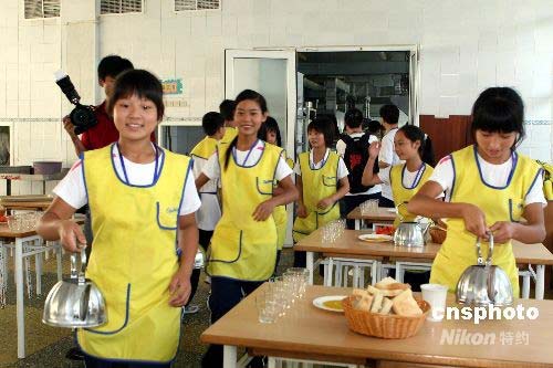 中國(guó)地震災(zāi)區(qū)孩子在俄羅斯客串“服務(wù)員”