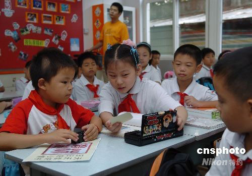 圖:北川災(zāi)區(qū)少年在某國(guó)際學(xué)校感受愛(ài)心