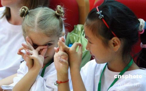 地震災(zāi)區(qū)兒童與外國(guó)兒童歡聚"心連心夏令營(yíng)"