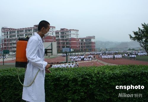 圖:四川對(duì)地震災(zāi)區(qū)學(xué)校進(jìn)行全面消毒