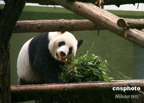 圖:四川臥龍大熊貓美靈南京過(guò)生日