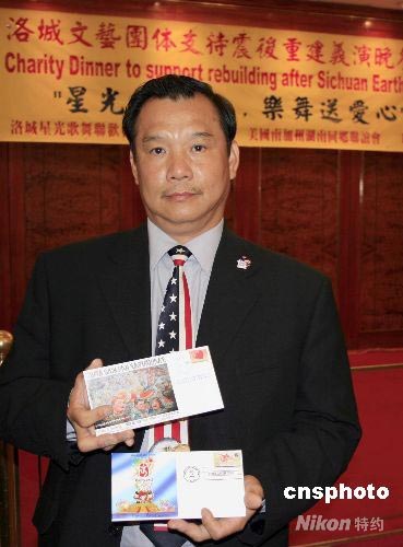 洛杉磯華人發(fā)行紀念“5.12”遇難同胞首日封
