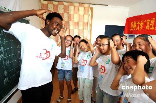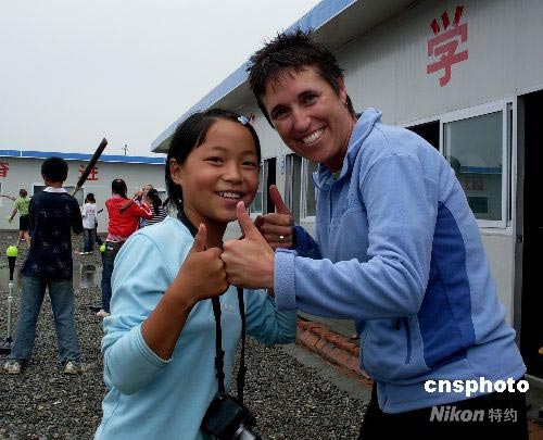 圖:美國職業(yè)女壘隊在綿竹鼓勵災區(qū)學生