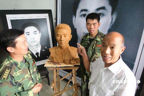 圖:解放軍塑像紀念抗震救災烈士戰(zhàn)友