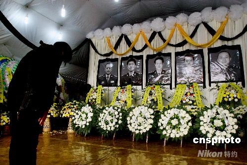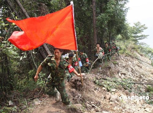 圖:官兵克服困難趕赴失事直升機警民遺體營地