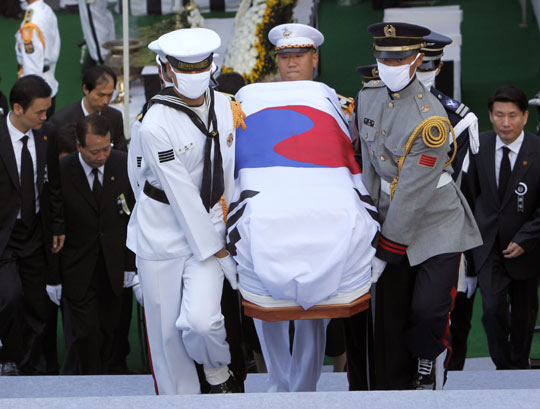圖:韓國前總統(tǒng)金大中遺體下葬