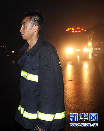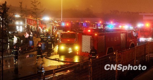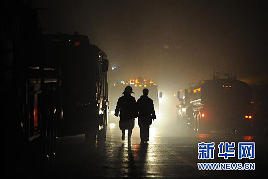 圖:大連新港輸油管道爆炸起火 消防官兵在滅火現(xiàn)場