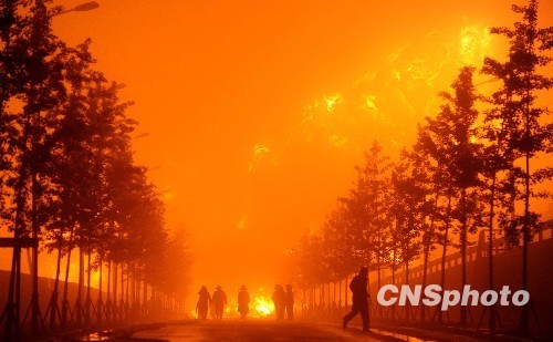 圖:大連新港輸油管道發(fā)生爆炸起火現(xiàn)場直擊(4)