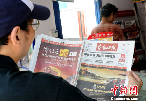福州市民關(guān)注伊春客機(jī)墜機(jī)事故相關(guān)報道