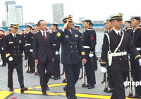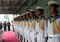 訪日?qǐng)F(tuán)指揮官肖新年檢閱日本海軍儀仗隊(duì)