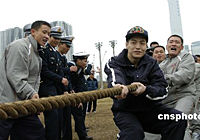 "深圳"號(hào)驅(qū)逐艦官兵在日參加拔河比賽