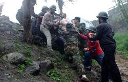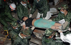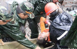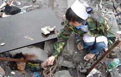 武警官兵全力搜救北川中學(xué)被困學(xué)生