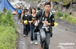 重慶志愿者跑步前往彭州地震災(zāi)區(qū)