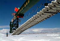 從驚雷翻滾的風火山口,到夏日飛雪的唐古拉山巔,穿過神秘的可可西里無人區(qū),到達圣潔的布達拉宮,一條“鋼鐵天路”綿延1000多公里,在這片曾經(jīng)人跡罕至的雪域高原上架起又一條惠澤青藏人民的生命線。 青藏鐵路是中國繼三峽工程之后最受世界注目的一項重大工程,也是人類鐵路建設(shè)史上最宏偉的工程。它全長1900多公里,是世界上海拔最高、線路最長的高原鐵路。青藏鐵路的全線貫通,意味著西藏終于結(jié)束了沒有鐵路的歷史。在被稱為“人類生命的禁區(qū)”的地方鋪設(shè)青藏鐵路,像是在鋪設(shè)一條“天路”,需要強大的科技實力作基礎(chǔ),需要強大的精神支柱作支撐。青藏鐵路的建設(shè)者們靠著這種精神所產(chǎn)生的不竭動力,創(chuàng)造出了人間不曾想像的一項項奇跡。<專題:青藏鐵路7月1日全線通車>