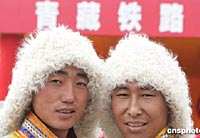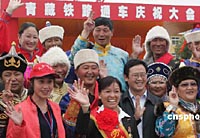 少數(shù)民族同胞參加青藏鐵路通車慶典