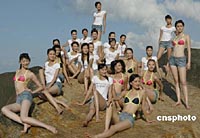 參賽的男女選手在三亞拍照