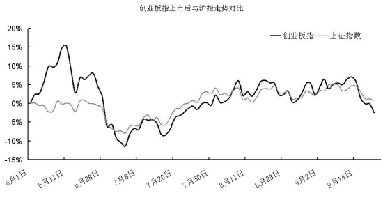 整體上看,至第23批創(chuàng)業(yè)板股上市的9月17日,創(chuàng)業(yè)板已開板220個(gè)交易日,即平均每1.83個(gè)交易日即有1股上市。(表2)