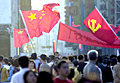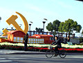 組圖:天安門廣場(chǎng)吊裝巨型標(biāo)語(yǔ)牌的新景觀