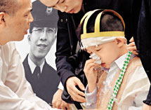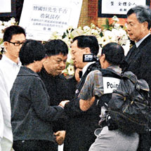 3日晚,香港紅磡世界殯儀館開始為九龍尖沙咀槍擊案殉職警員曾國恒設靈,香港特首曾蔭權及警務處長李明逵前往致祭。4日上午,香港特區(qū)立法會主席范徐麗泰、香港公務員事務局局長俞宗怡、保安局局長李少光、警務處處長李明逵等多位官員,以及來自各界的代表人士,出席了喪禮儀式。<全文>