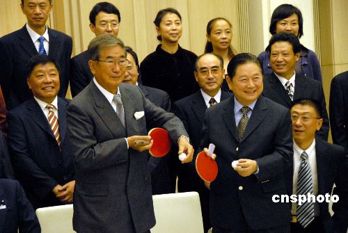 10月26日下午,東京都知事石原慎太郎在東京市政大廈會見正在日本訪問的中國乒協(xié)主席徐寅生及其訪日團(tuán)一行20人。徐寅生一行應(yīng)日本乒協(xié)的邀請10月25日抵達(dá)東京開始對日本進(jìn)行一周訪問,代表團(tuán)成員包括莊則棟、曹燕華等10多名國手。石原慎太郎說,在日中邦交正常化35周年之際,在東京見到中國的著名乒乓選手非常榮幸。石原希望中國支持東京申辦2016年夏季奧運會,通過體育交流促進(jìn)中日關(guān)系。中新社發(fā) 段躍中 攝