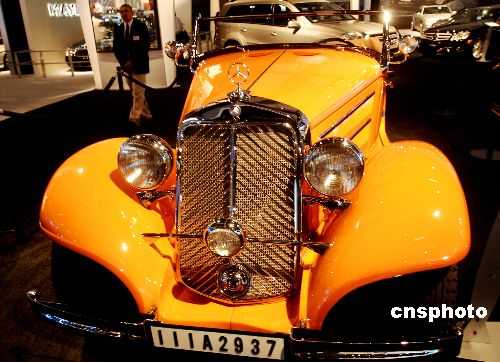在洛杉磯舉辦的二00七北美國(guó)際車(chē)展上,一輛奔馳和一輛寶馬老爺車(chē)向參觀者述說(shuō)著百年汽車(chē)文化傳承至今的變遷歷史。中新社發(fā) 賈國(guó)榮 攝