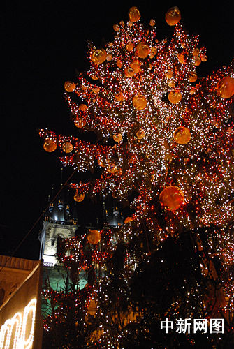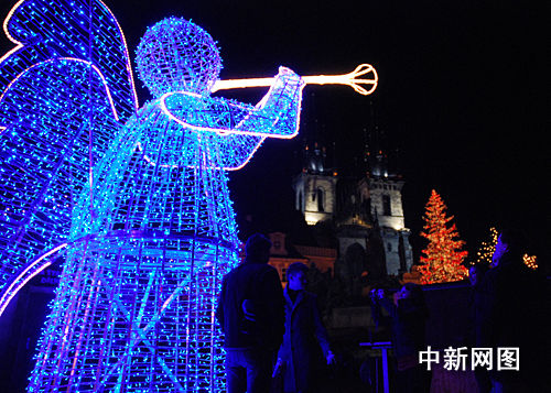 當(dāng)?shù)貢r(shí)間12月1日,捷克首都布拉格老場廣場舉行傳統(tǒng)的圣誕燈火亮燈和圣誕集市開張儀式。在大約12000名游客的歡呼聲中,布拉格市長貝姆啟動(dòng)開關(guān),胡斯塑像旁邊22米高的圣誕樹由下到上開始放射出燦爛光芒。今年新增的矗立在集市四角的4座長著翅膀吹號(hào)的天使燈火塑像讓游客們特別感興趣。黃頻 攝
