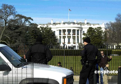 當(dāng)?shù)貢r間12月24日,在萬眾休假的圣誕節(jié)假期,白宮的陽臺上扎起了節(jié)日的紅蝴蝶結(jié),一片節(jié)日氣氛,為白宮擔(dān)任保安任務(wù)的特警在緊張的執(zhí)勤。中新社發(fā) 邱江波 攝